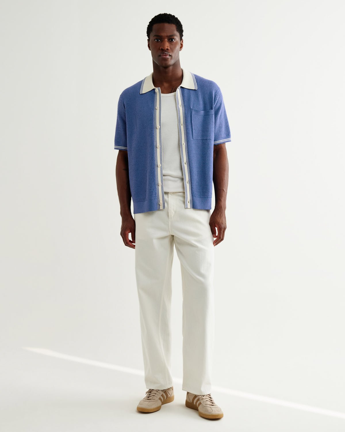 Belle Tipped Shirt in Blue/Ecru