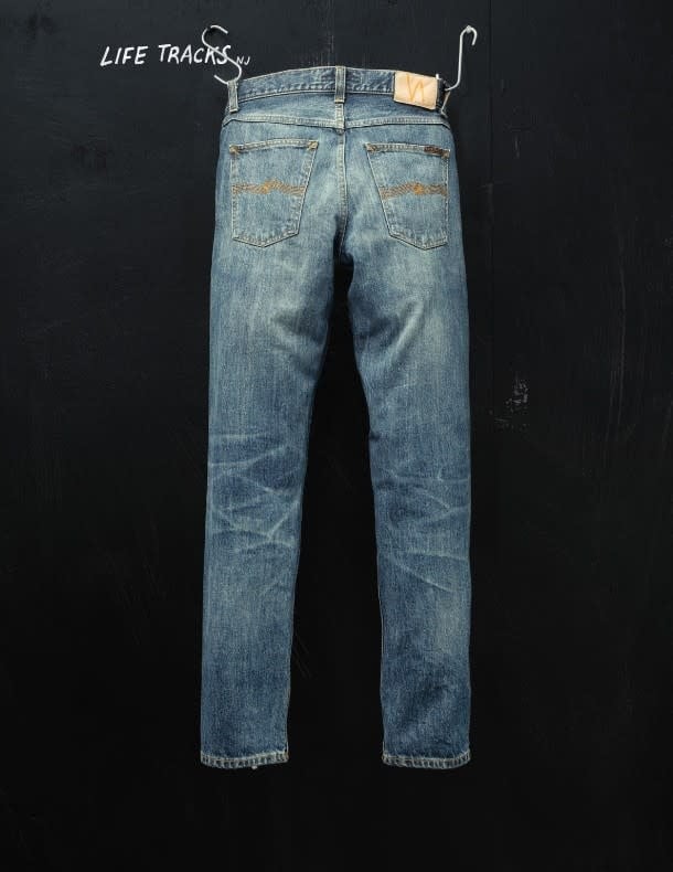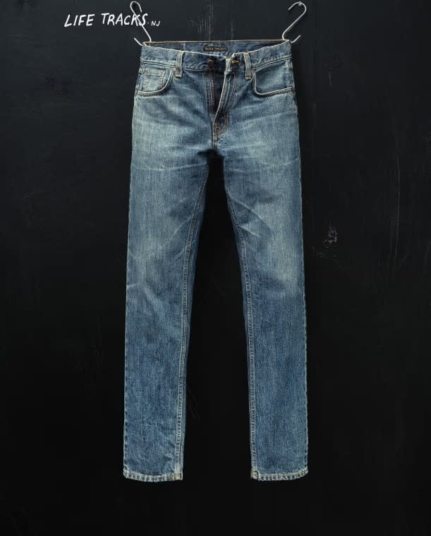 The Gritty Jackson Thriller Tracks faithfully replicate the fades and wear marks of an original pair of worn-in Nudie Jeans.