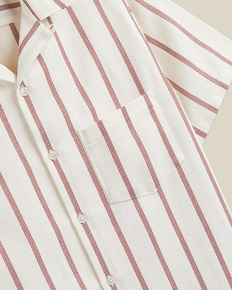 Pique Stripe Vacation Shirt in Bordeaux