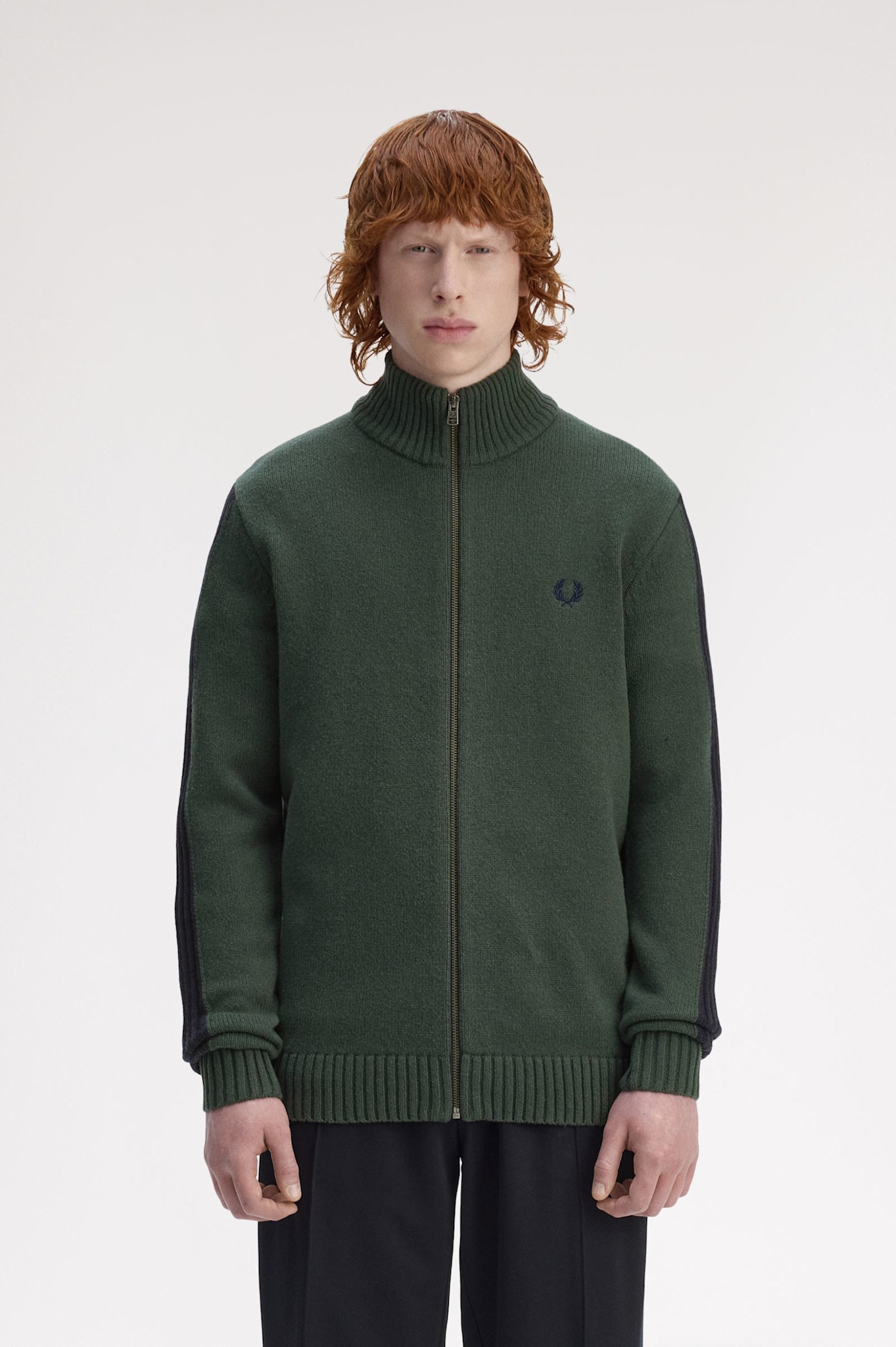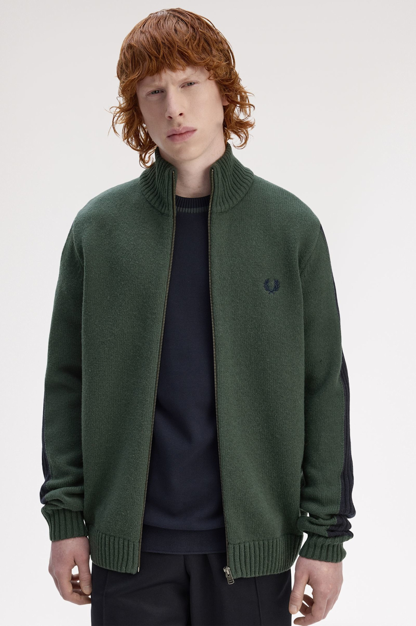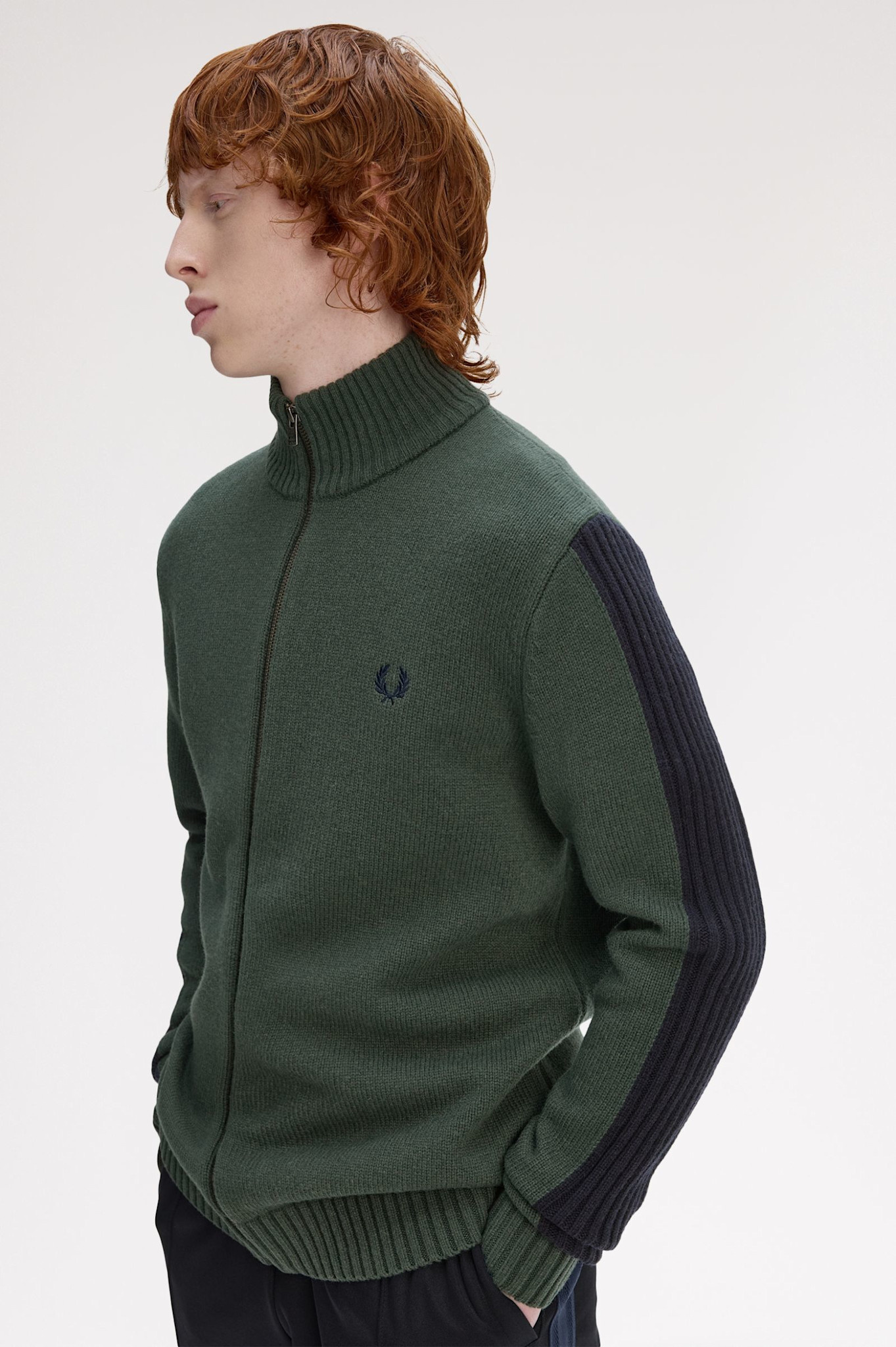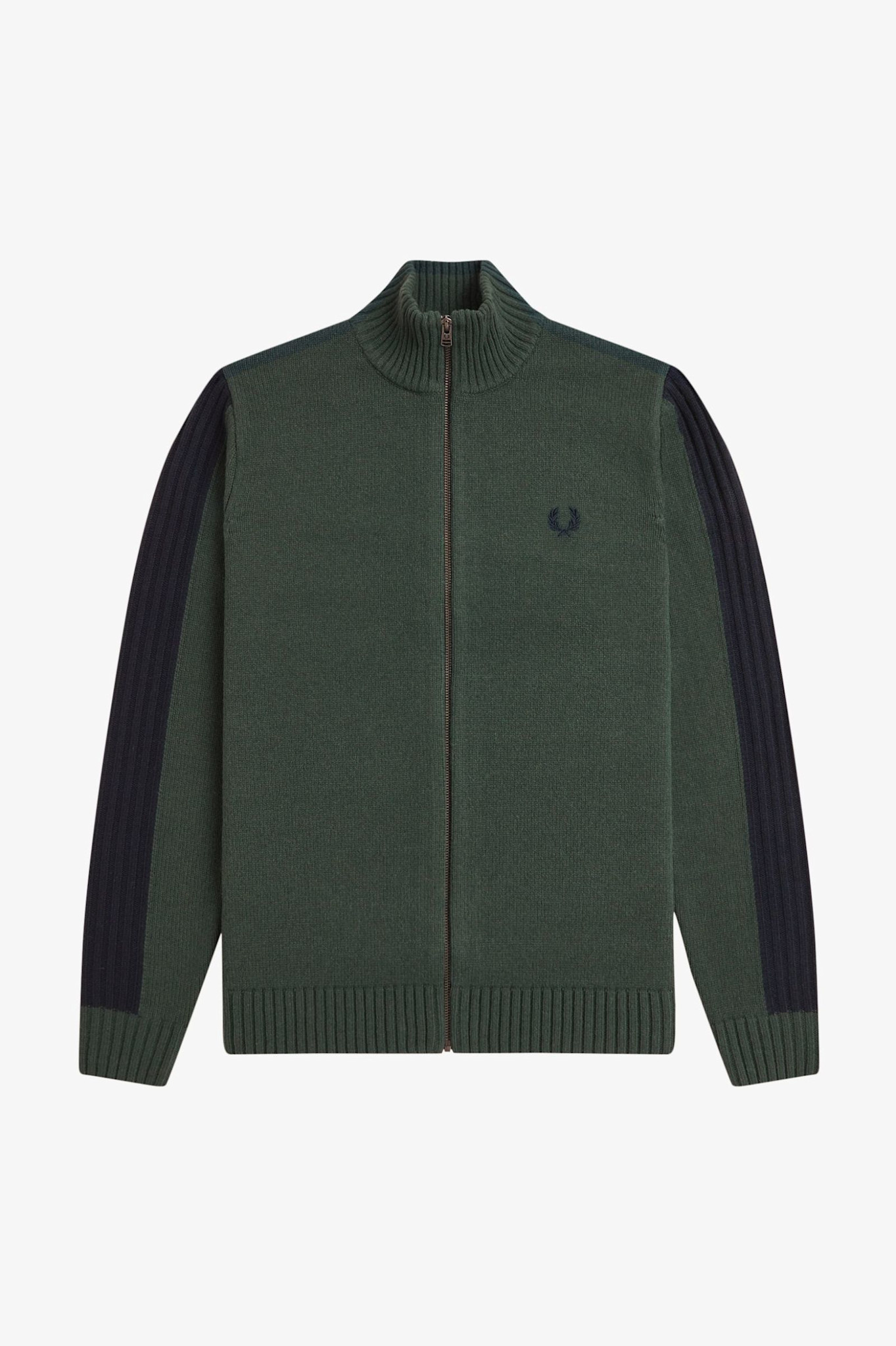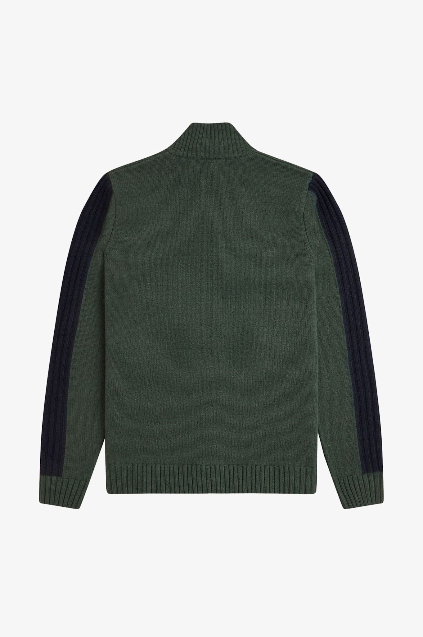 Ribbed Sleeve Zip Through Cardigan in Court Green